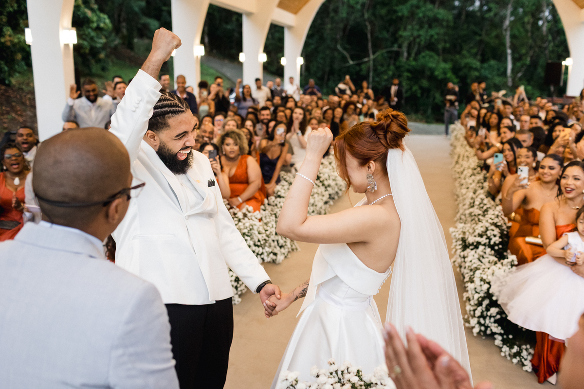 Que alegria imensa compartilhar com vocês a história de Nadine e Gabriel, um casal cuja emoção transformou um dia de chuva em uma celebração inesquecível!