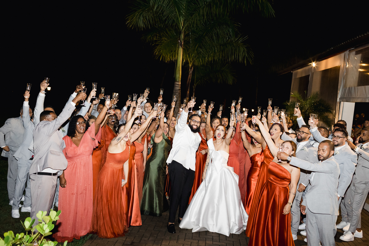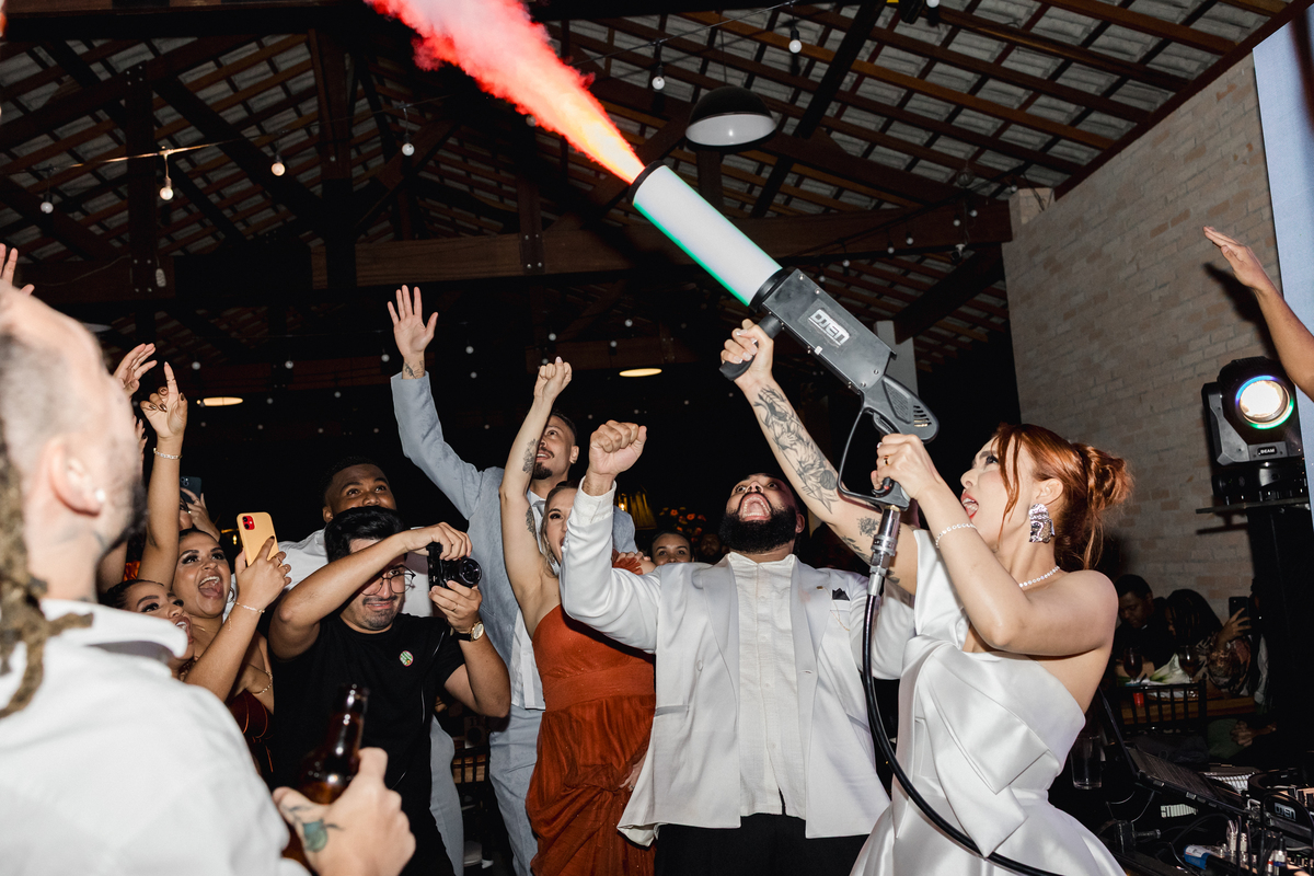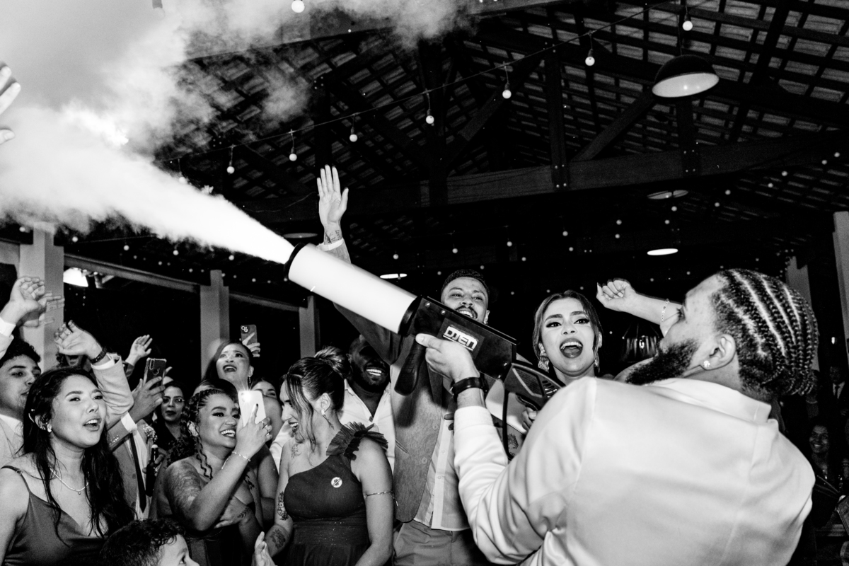 Tivemos a honra de fotografar o casamento deles no belíssimo Eco Espaço Eventos, em Santa Isabel. Este local, conhecido por sua beleza natural e atmosfera acolhedora, foi o cenário perfeito para a nossa Alquimia da Fotografia. Mesmo com a chuva, a alegria e a energia dos noivos e convidados brilharam mais forte, proporcionando momentos de pura espontaneidade e felicidade.