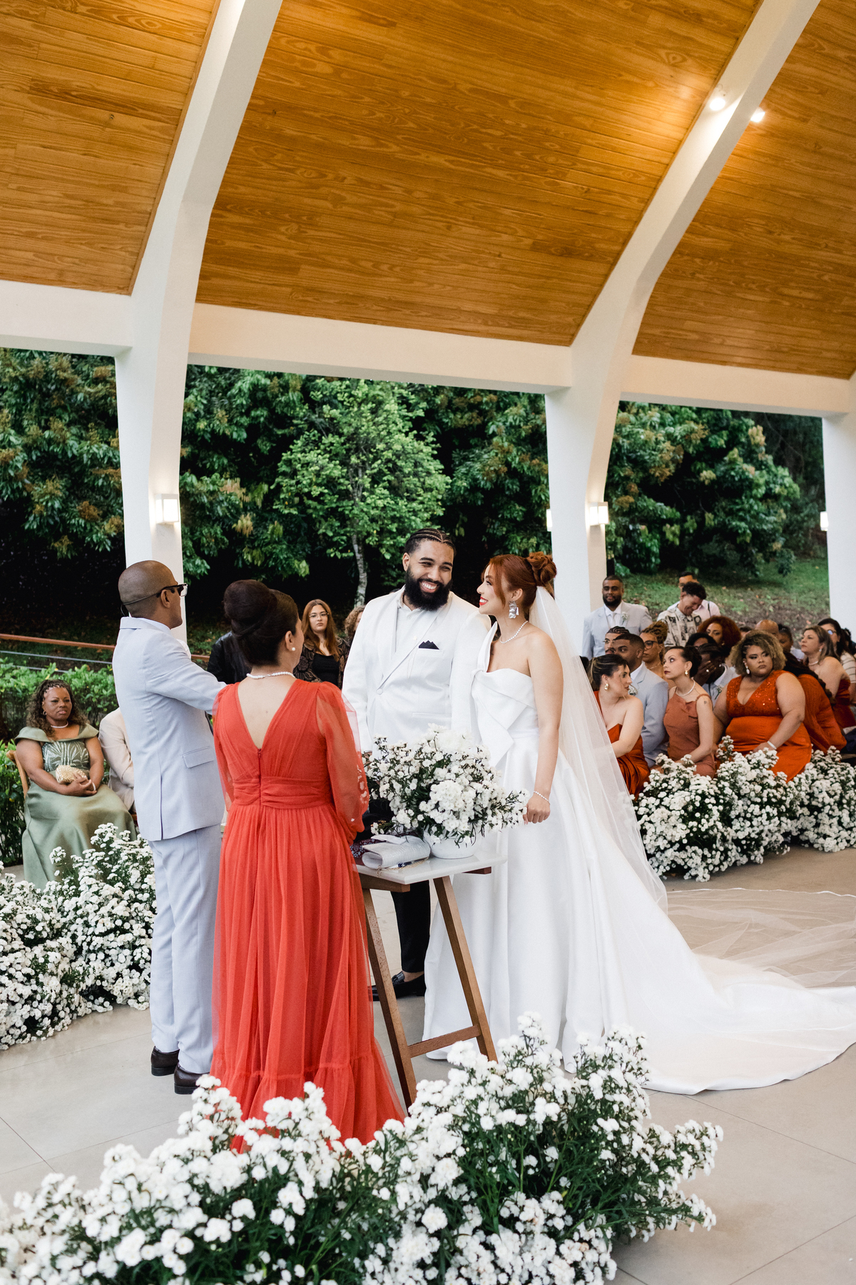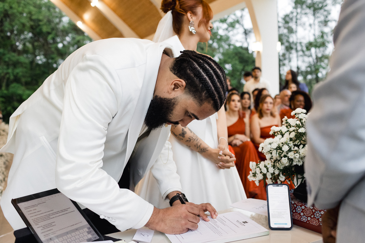 Para que o dia de Nadine e Gabriel fosse perfeito, contamos com um time de fornecedores de altíssima qualidade. A JM Assessoria orquestrou tudo com maestria e tranquilidade, garantindo que a logística do casamento fluísse impecavelmente, mesmo com a mudança de clima.