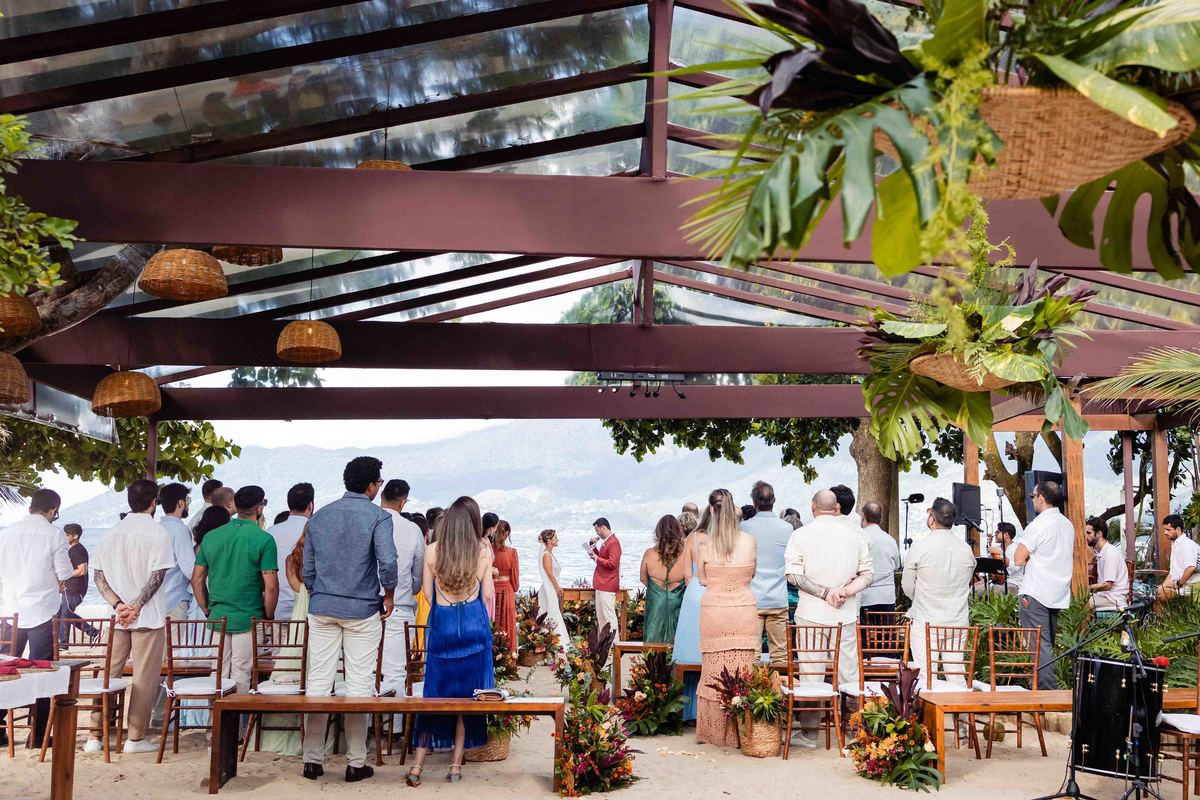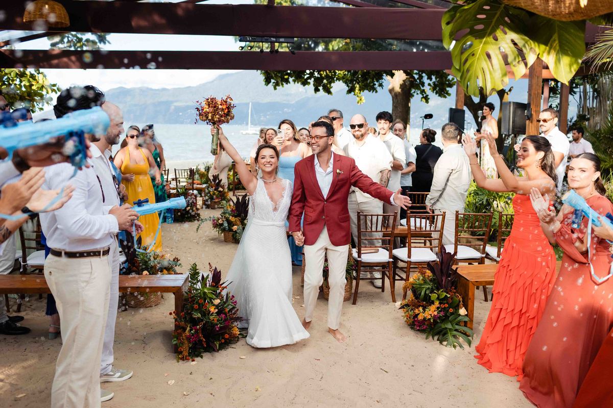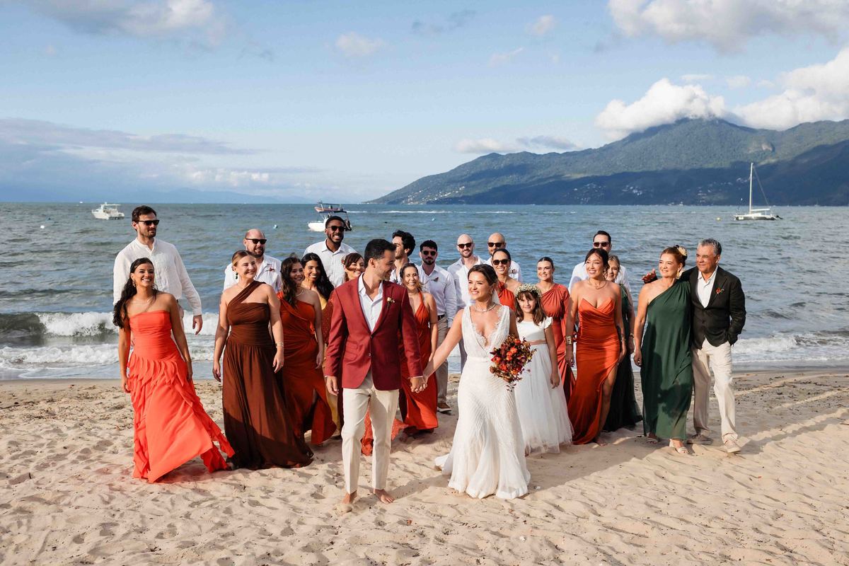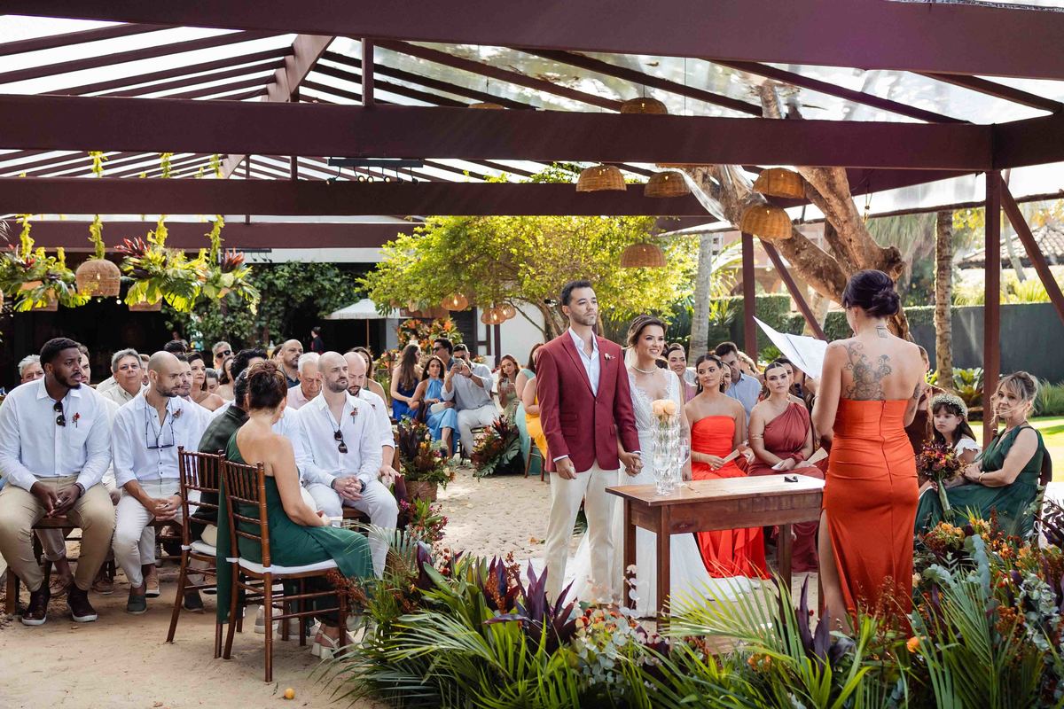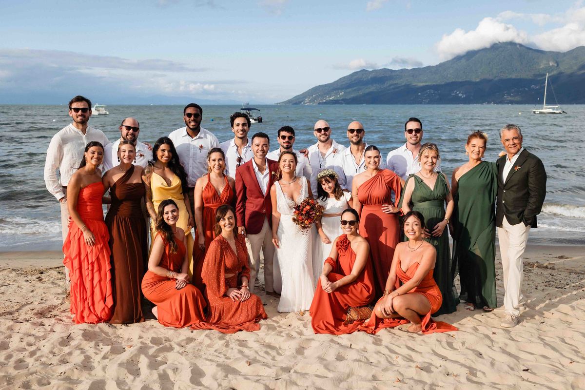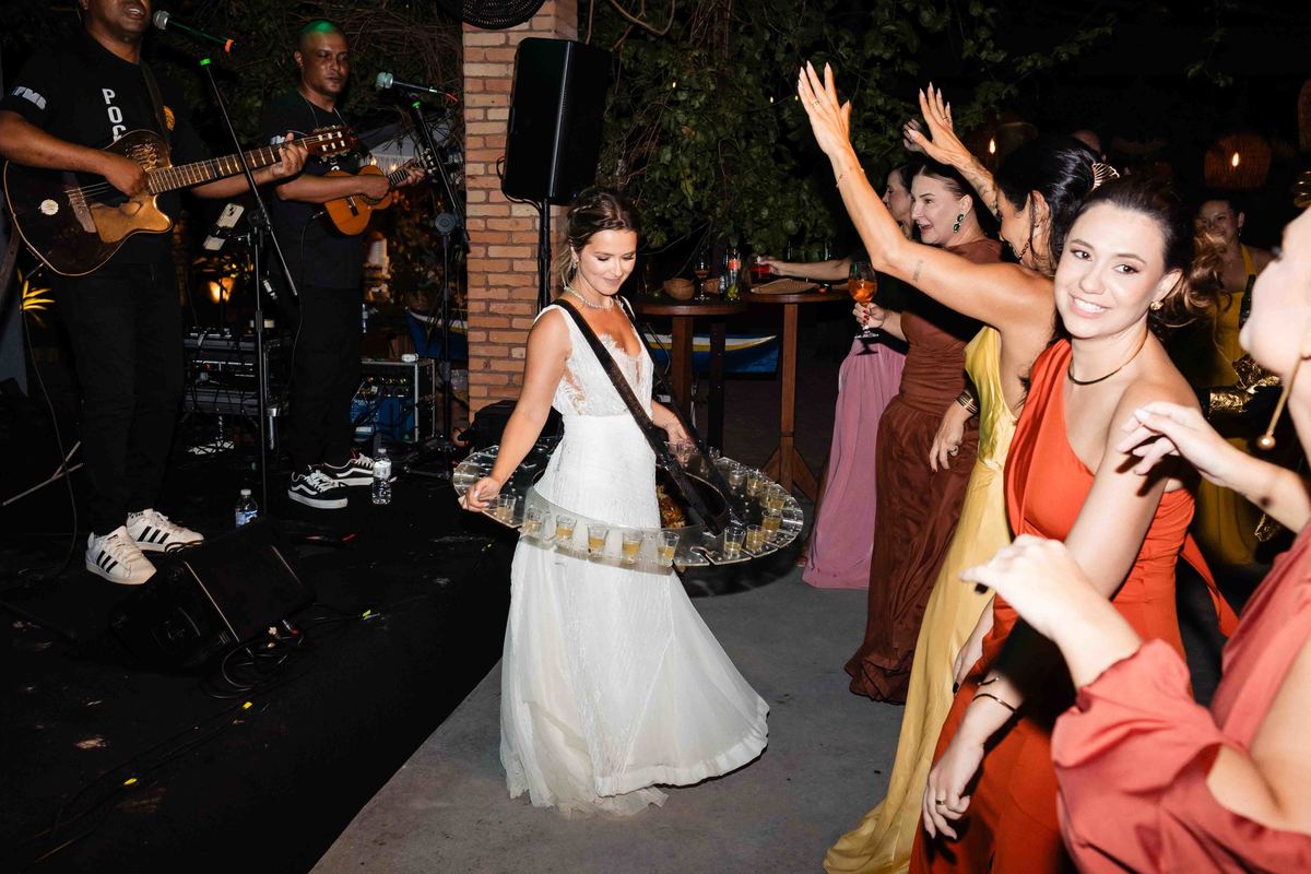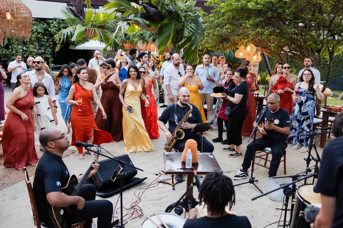O dia foi presenteado com um pôr do sol dourado, daqueles que só o litoral norte de São Paulo sabe proporcionar. A cerimônia na Casa Arandella fluiu com uma energia vibrante, culminando em uma roda de samba contagiante que envolveu todos os convidados.