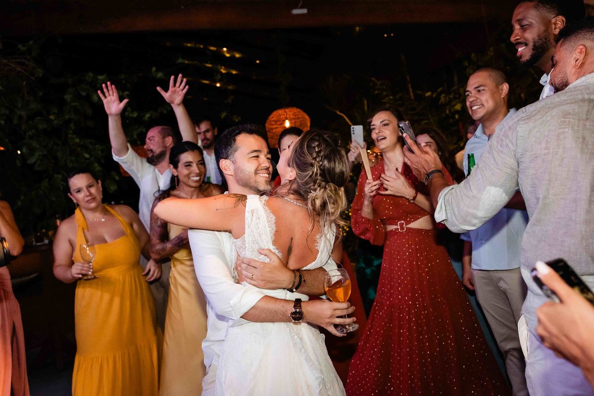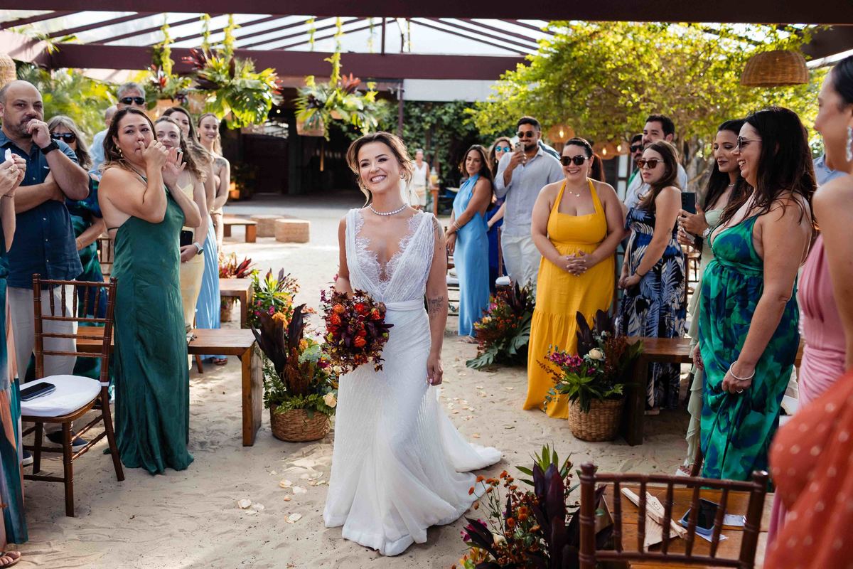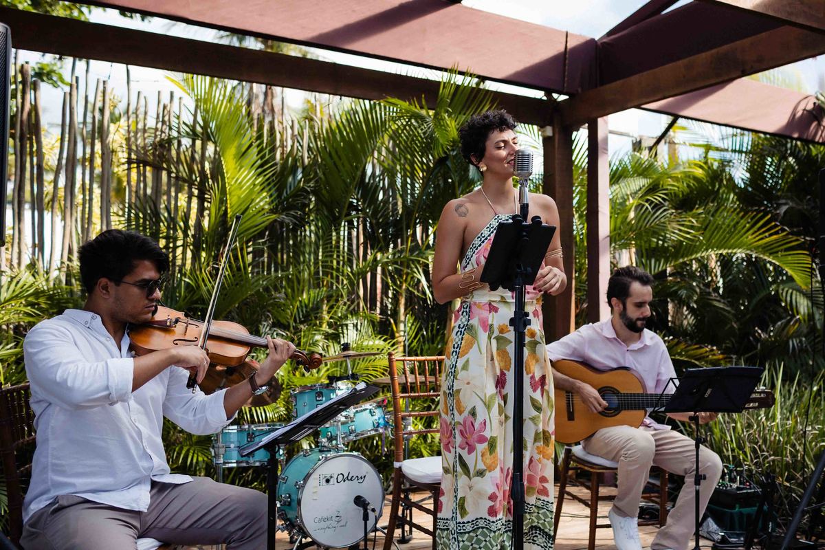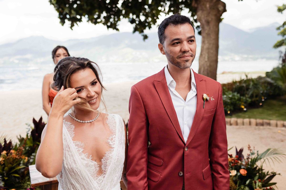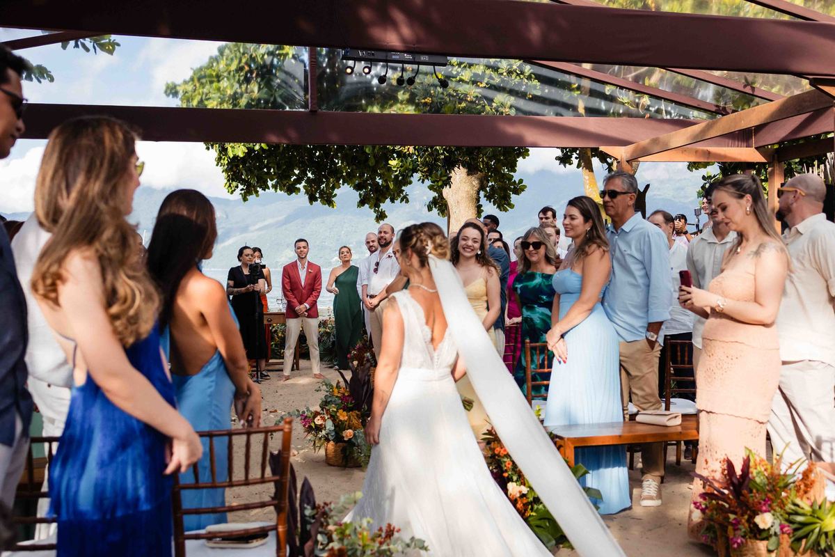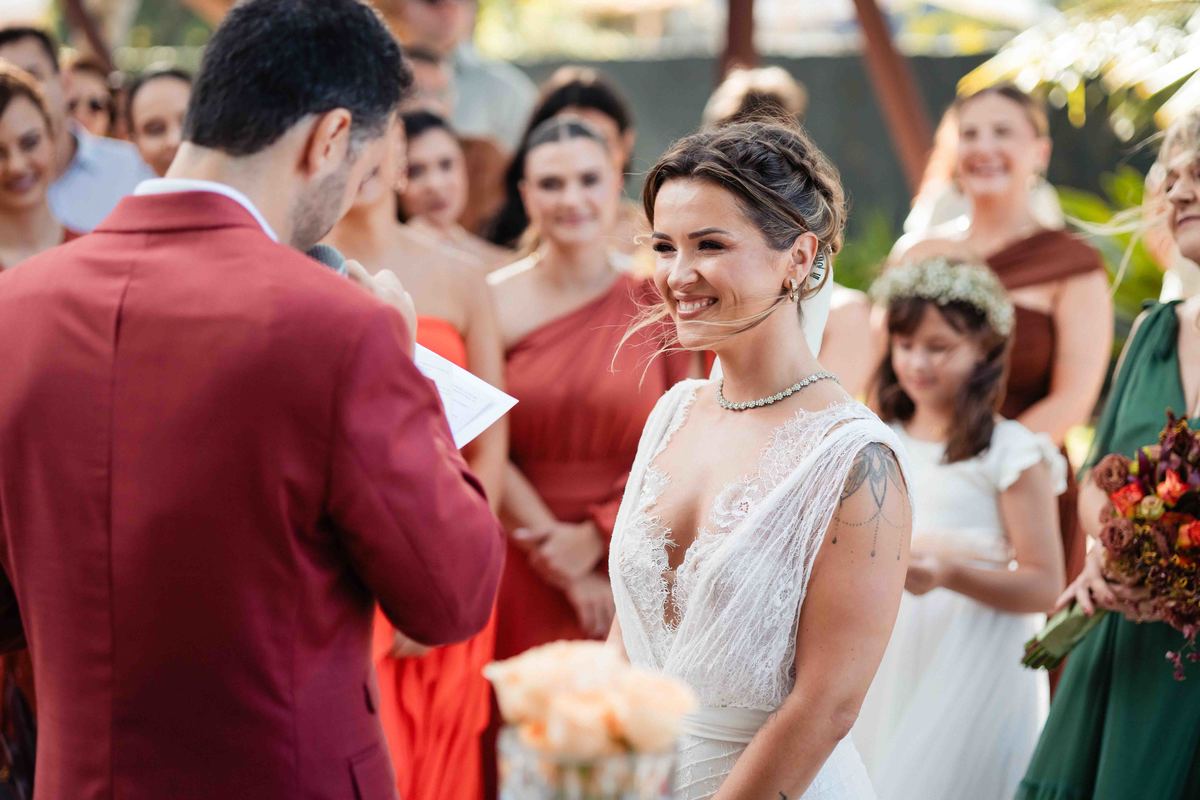 O dia foi presenteado com um pôr do sol dourado, daqueles que só o litoral norte de São Paulo sabe proporcionar. A cerimônia na Casa Arandella fluiu com uma energia vibrante, culminando em uma roda de samba contagiante que envolveu todos os convidados.