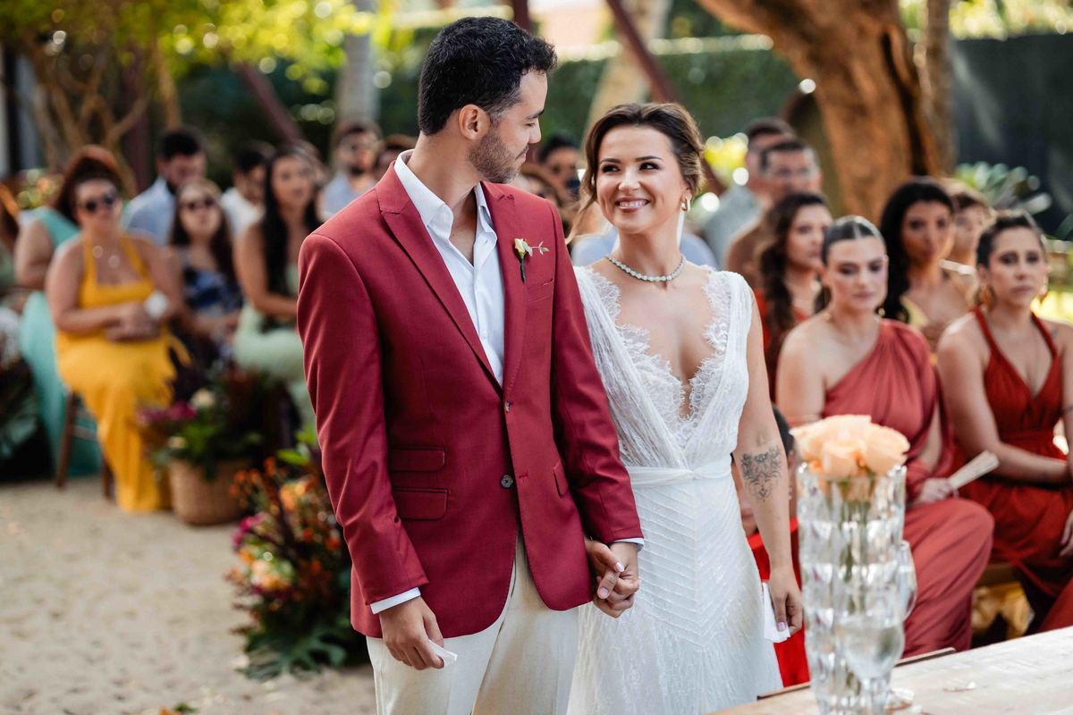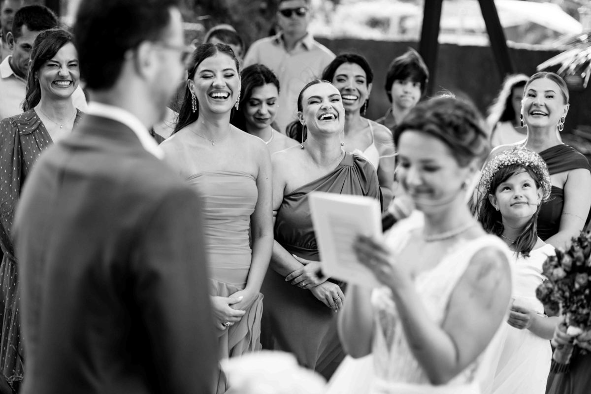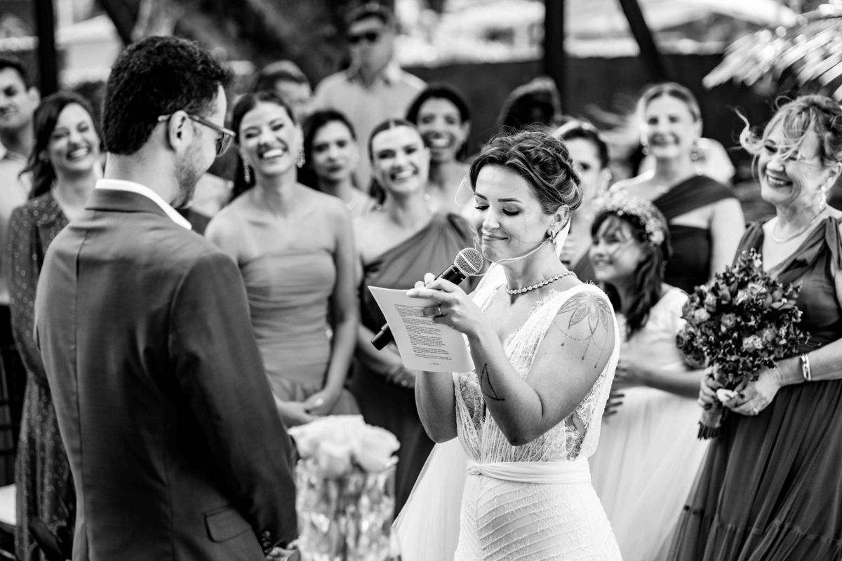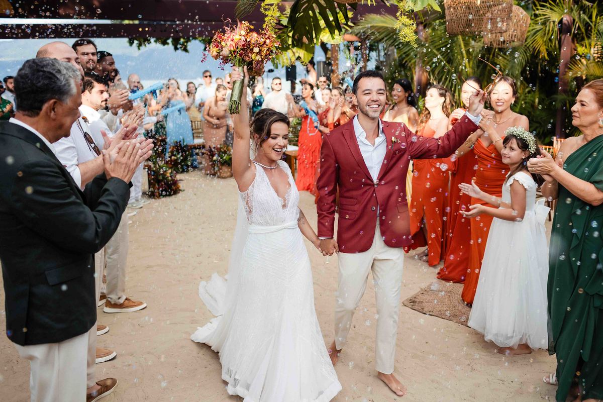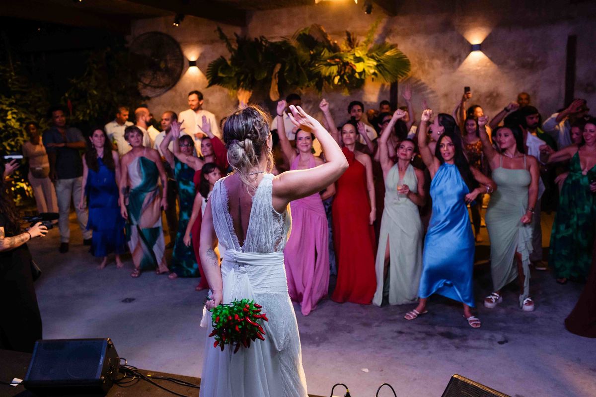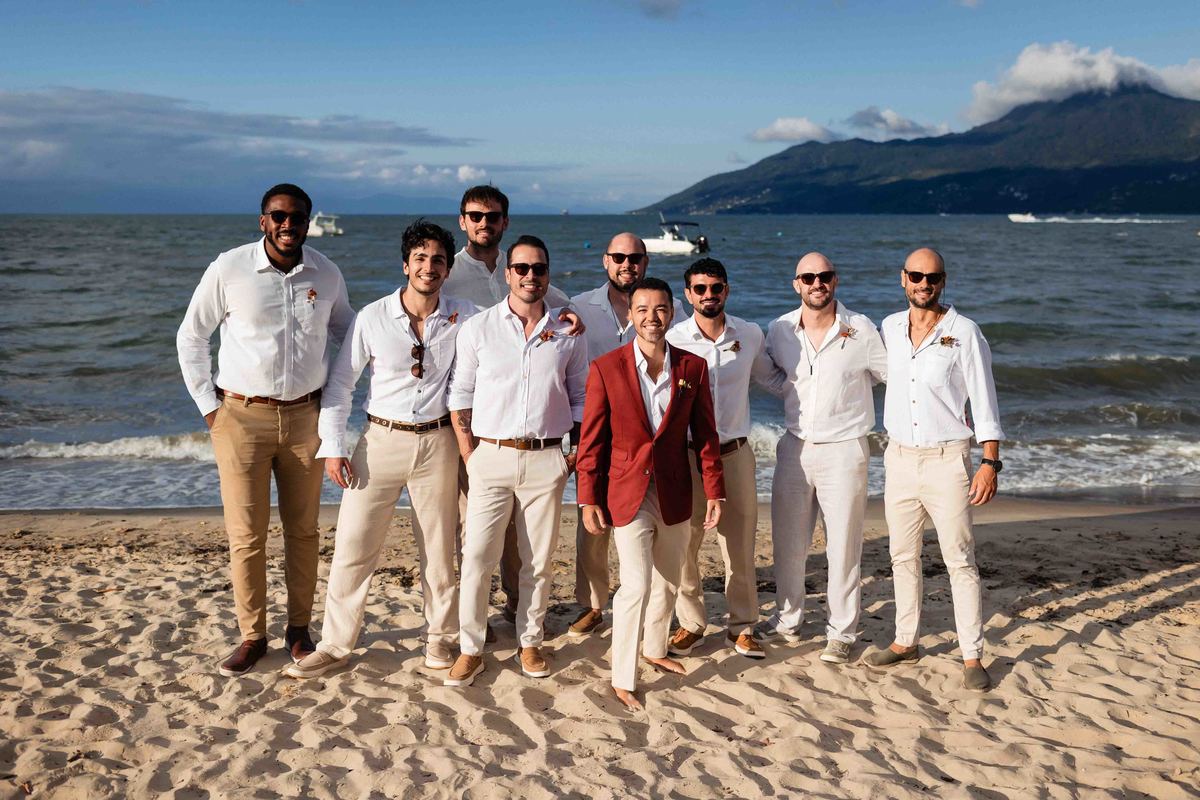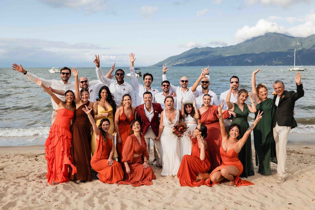 O dia foi presenteado com um pôr do sol dourado, daqueles que só o litoral norte de São Paulo sabe proporcionar. A cerimônia na Casa Arandella fluiu com uma energia vibrante, culminando em uma roda de samba contagiante que envolveu todos os convidados.