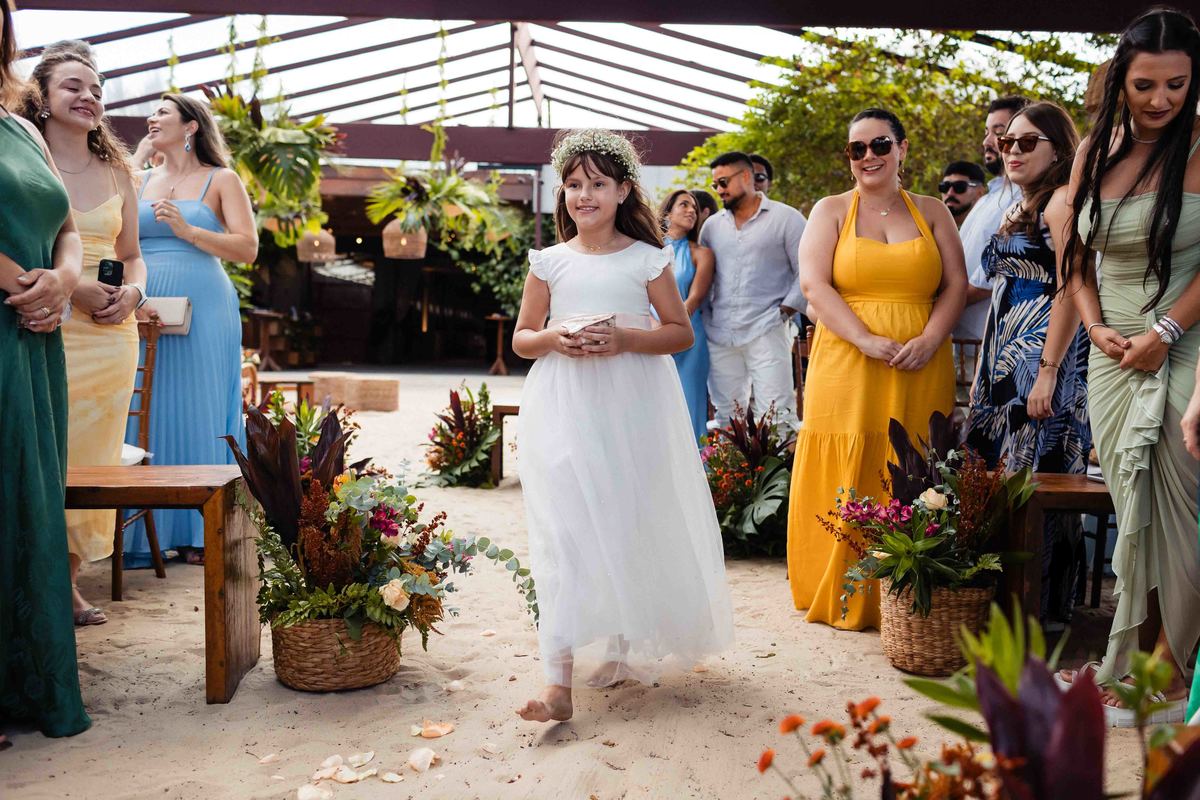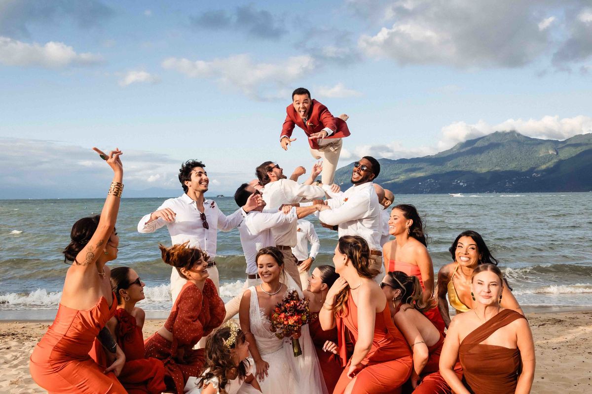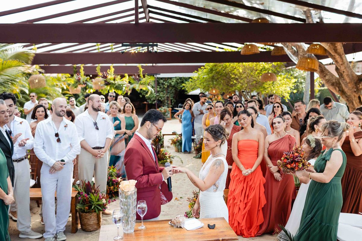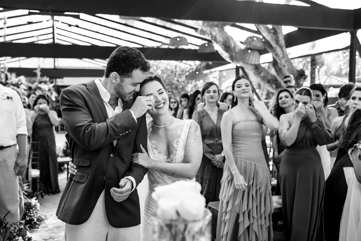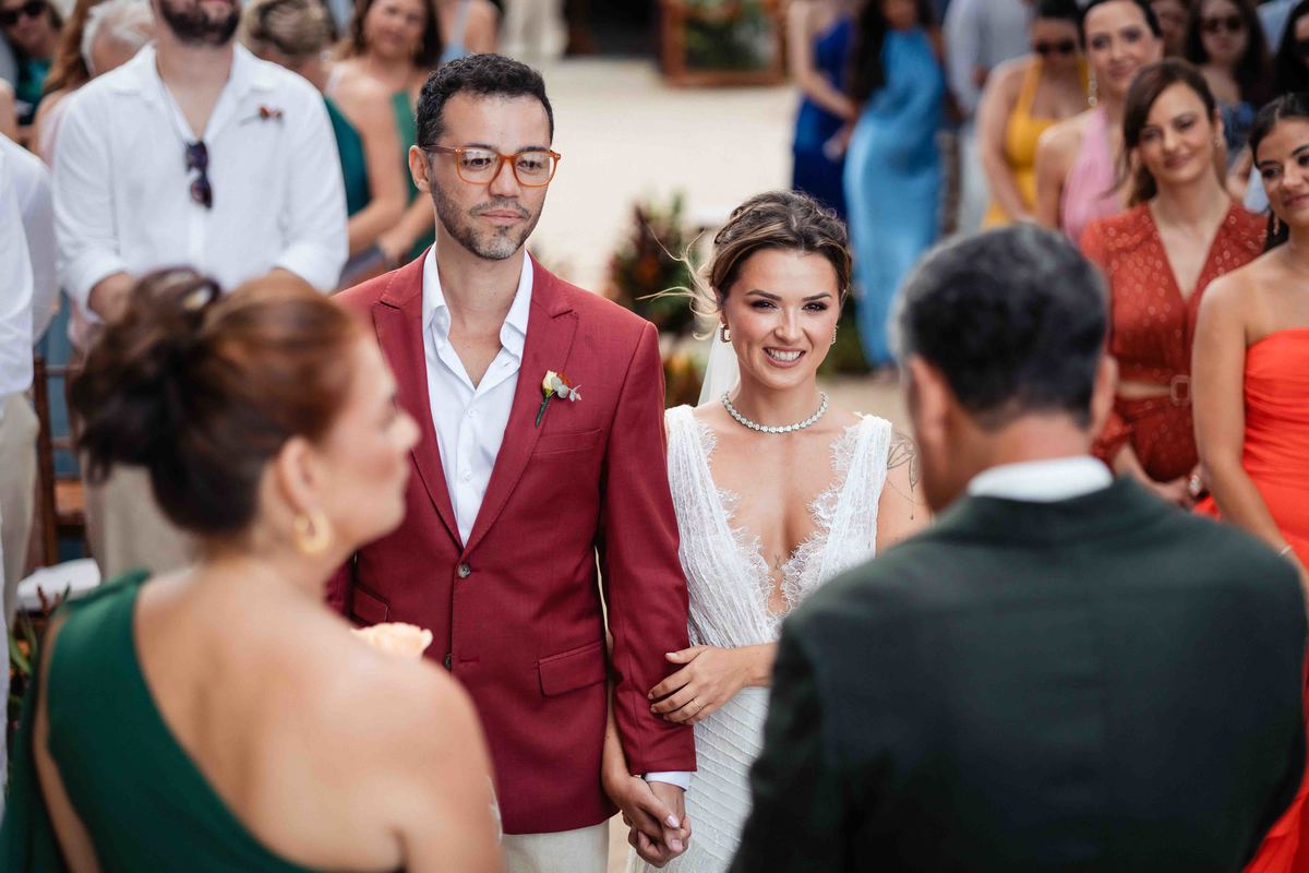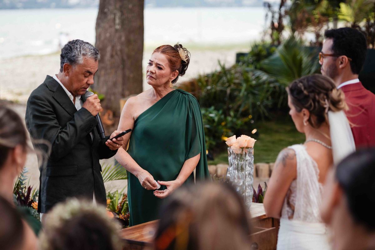 O dia foi presenteado com um pôr do sol dourado, daqueles que só o litoral norte de São Paulo sabe proporcionar. A cerimônia na Casa Arandella fluiu com uma energia vibrante, culminando em uma roda de samba contagiante que envolveu todos os convidados.
