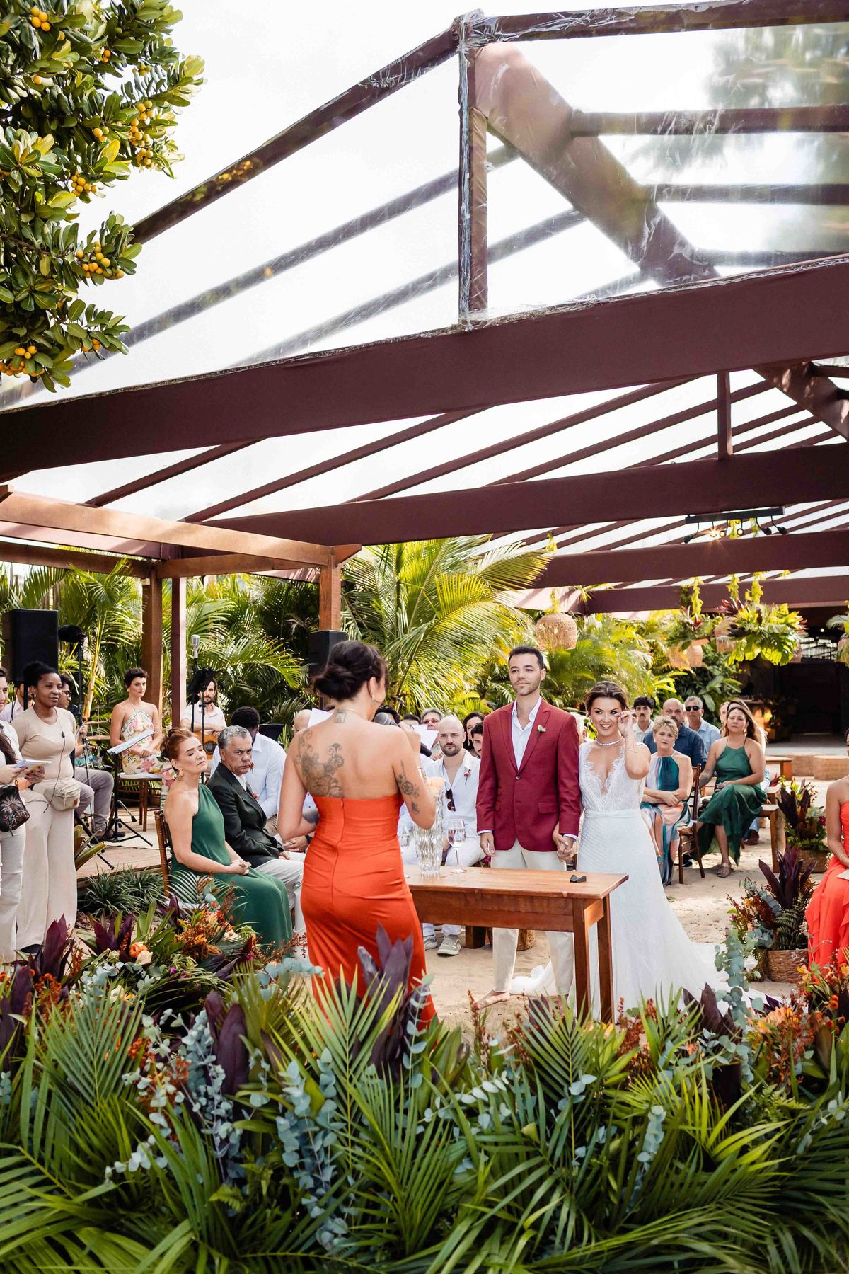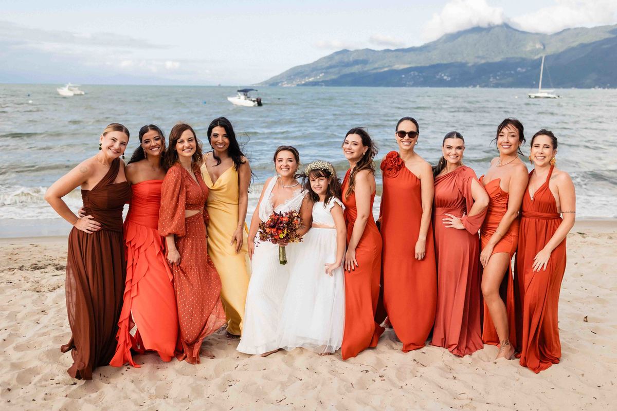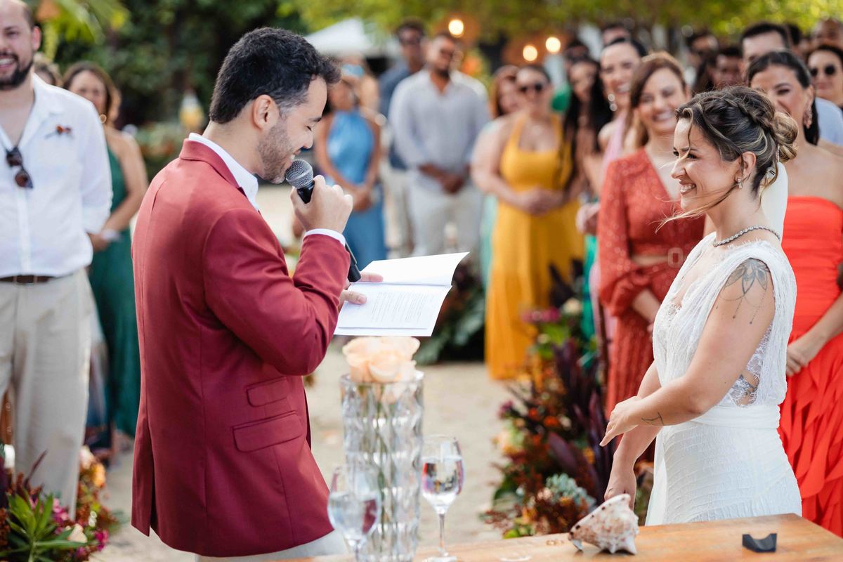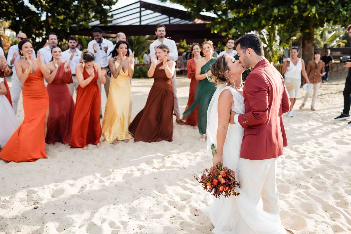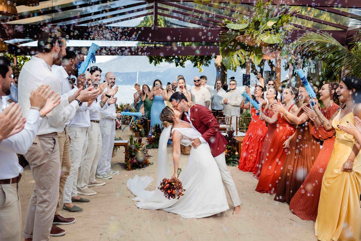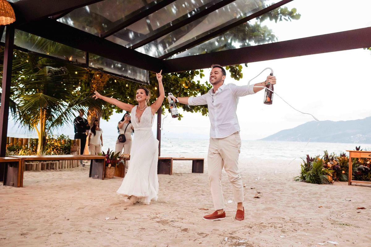 O dia foi presenteado com um pôr do sol dourado, daqueles que só o litoral norte de São Paulo sabe proporcionar. A cerimônia na Casa Arandella fluiu com uma energia vibrante, culminando em uma roda de samba contagiante que envolveu todos os convidados.