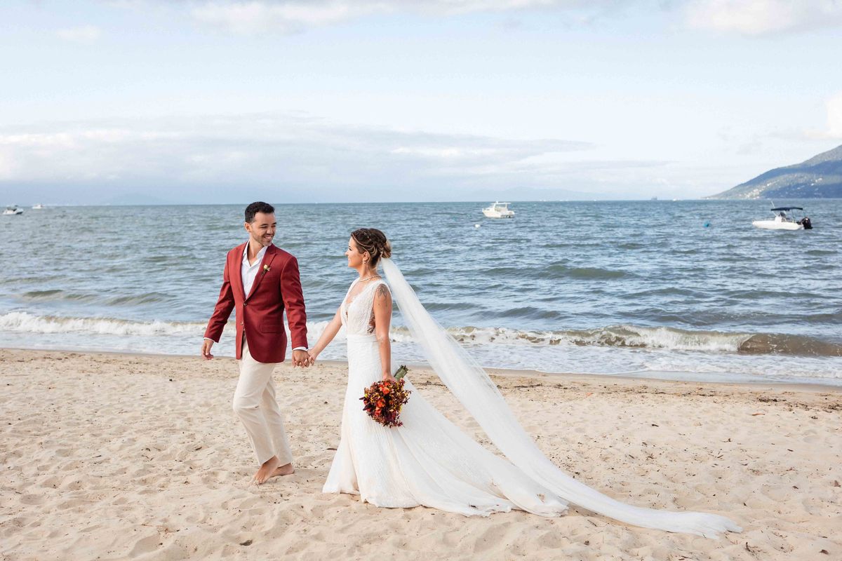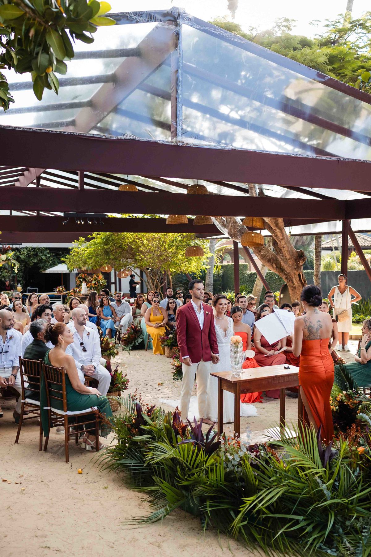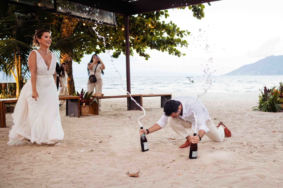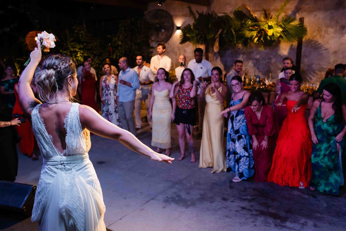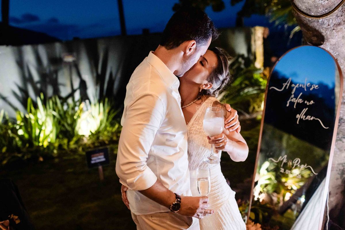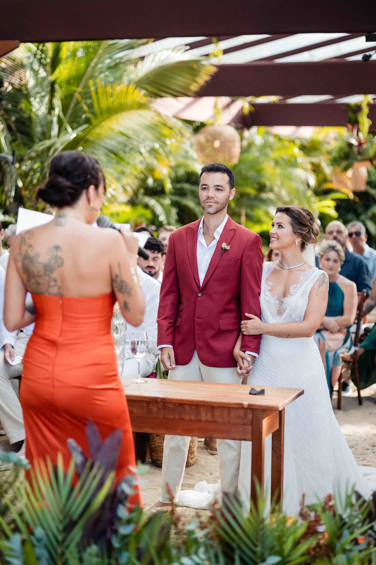 O dia foi presenteado com um pôr do sol dourado, daqueles que só o litoral norte de São Paulo sabe proporcionar. A cerimônia na Casa Arandella fluiu com uma energia vibrante, culminando em uma roda de samba contagiante que envolveu todos os convidados.