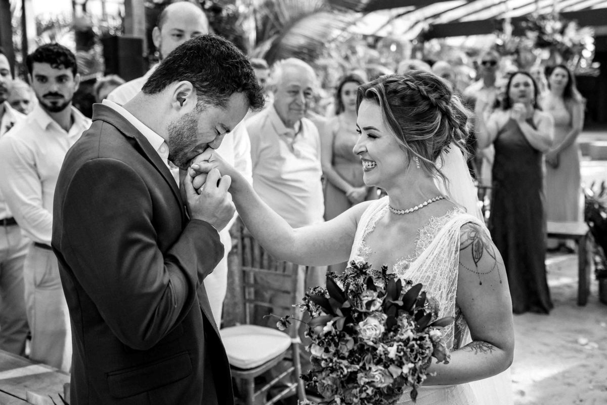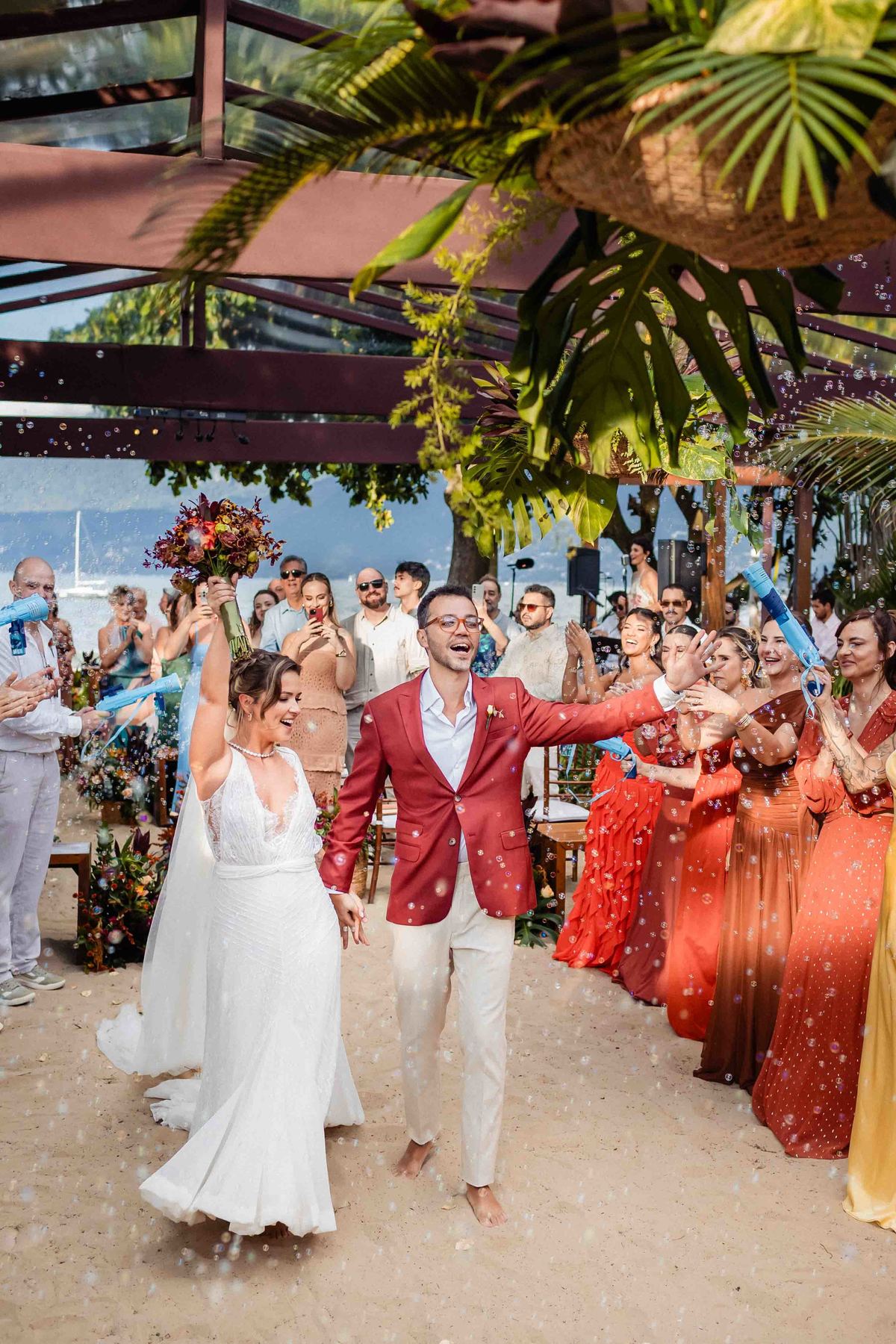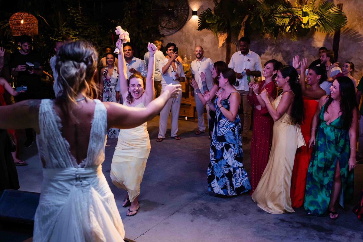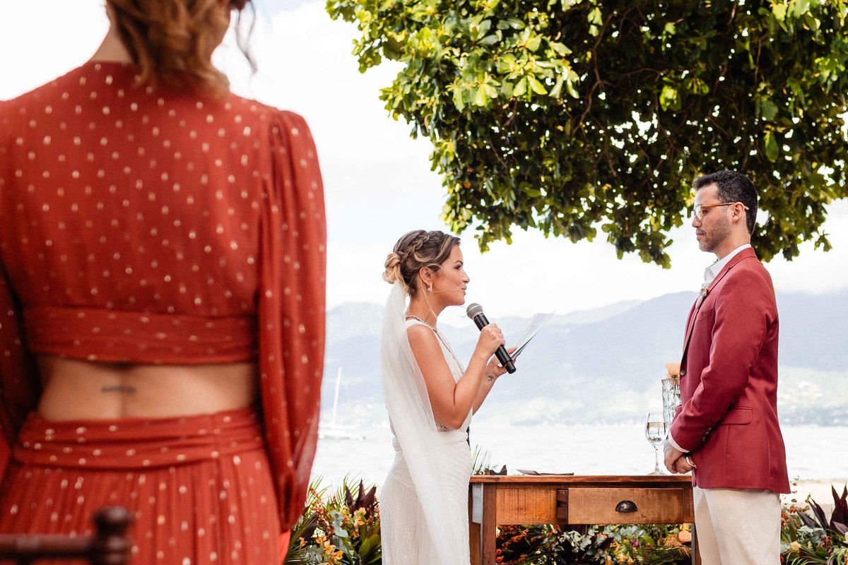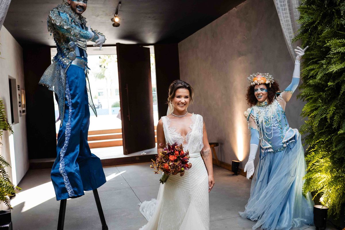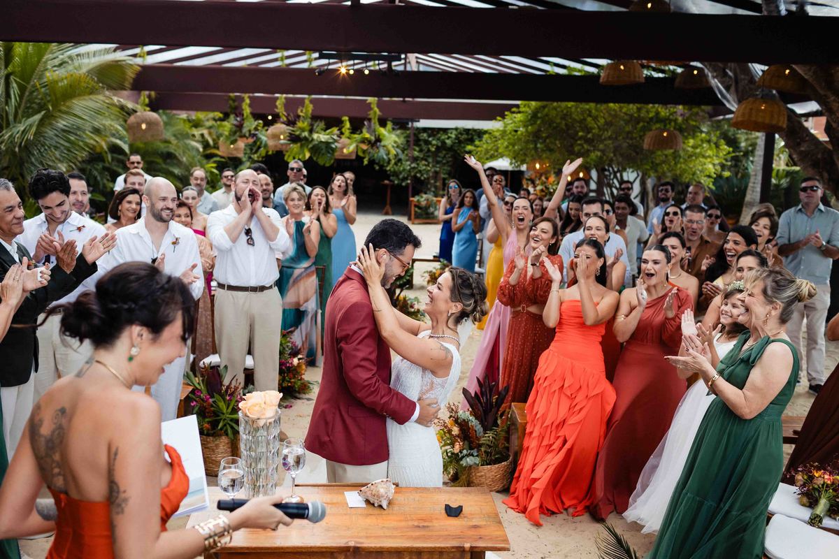 O dia foi presenteado com um pôr do sol dourado, daqueles que só o litoral norte de São Paulo sabe proporcionar. A cerimônia na Casa Arandella fluiu com uma energia vibrante, culminando em uma roda de samba contagiante que envolveu todos os convidados.