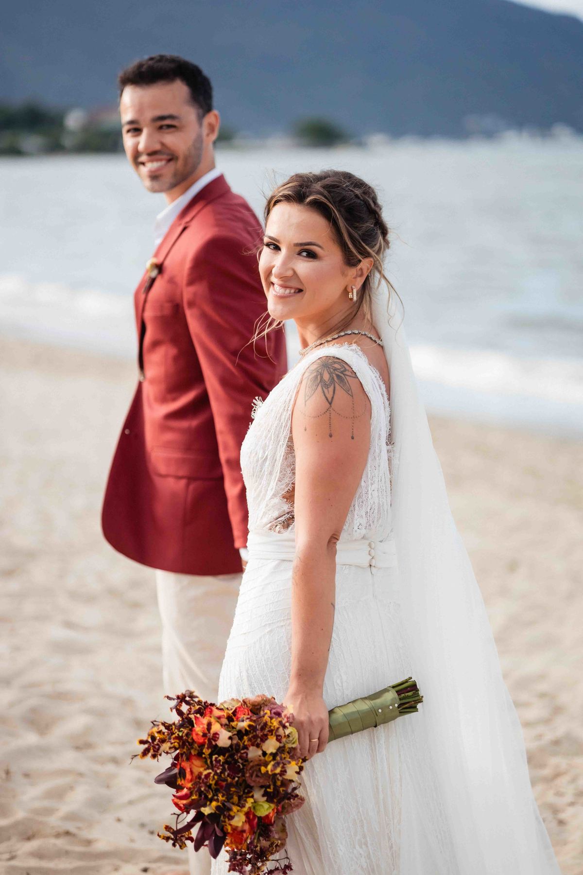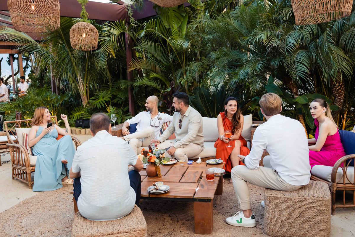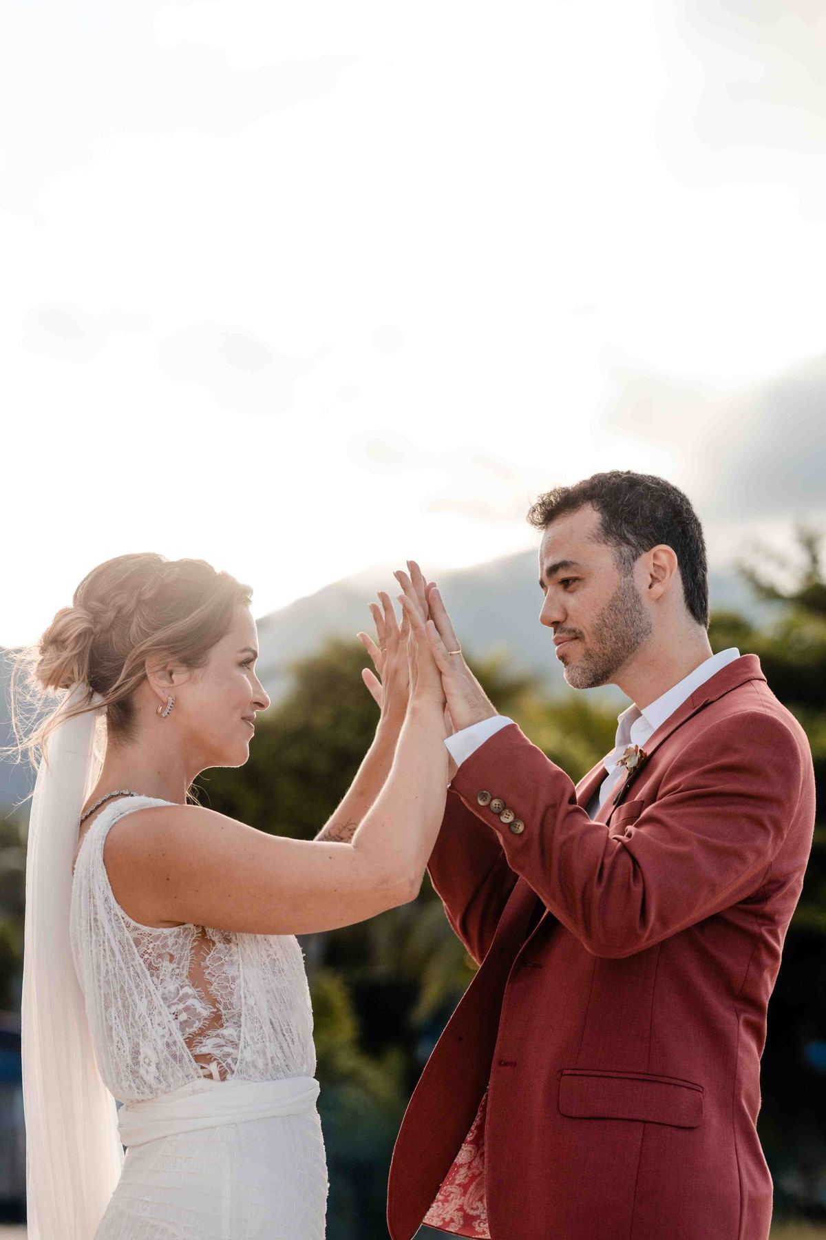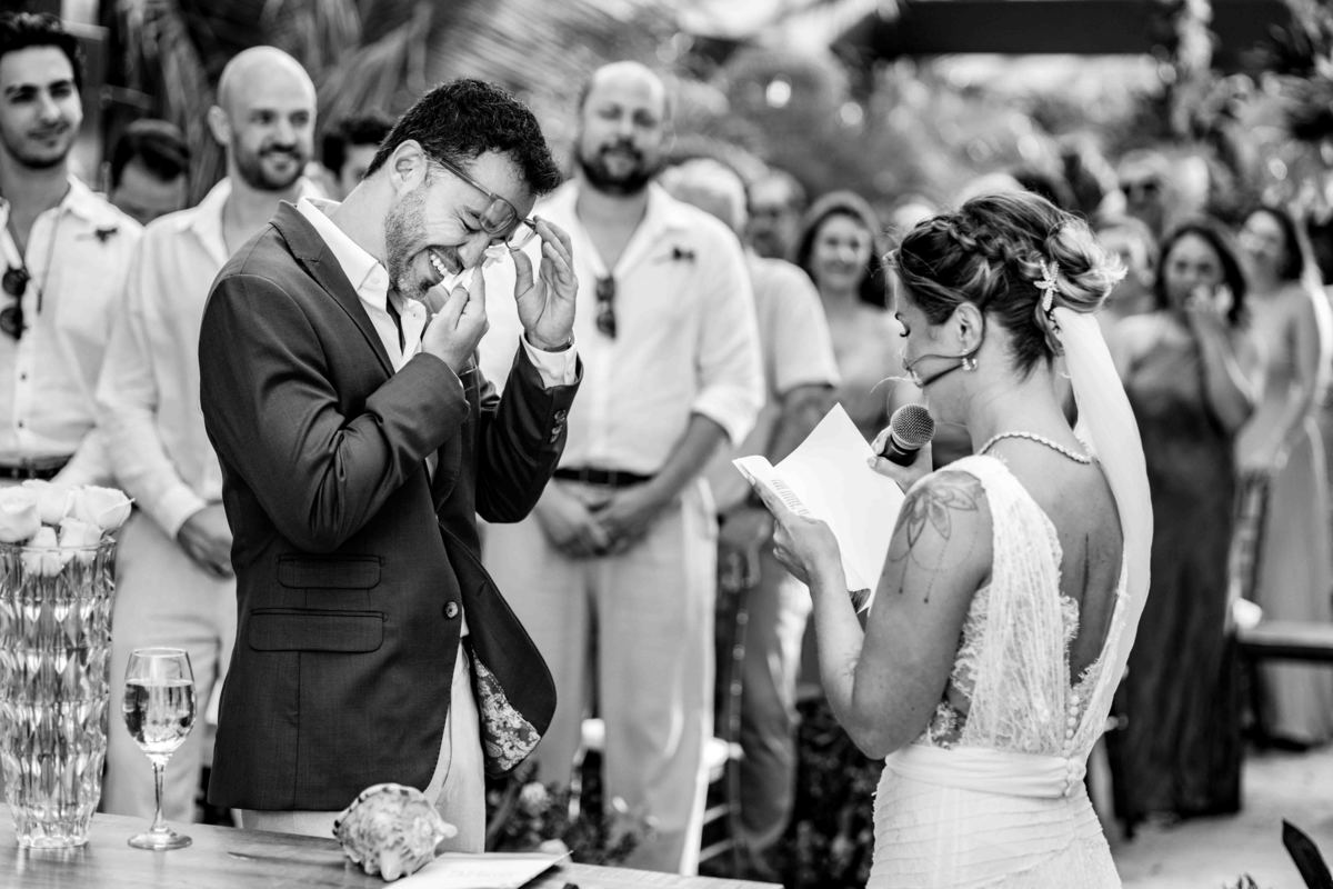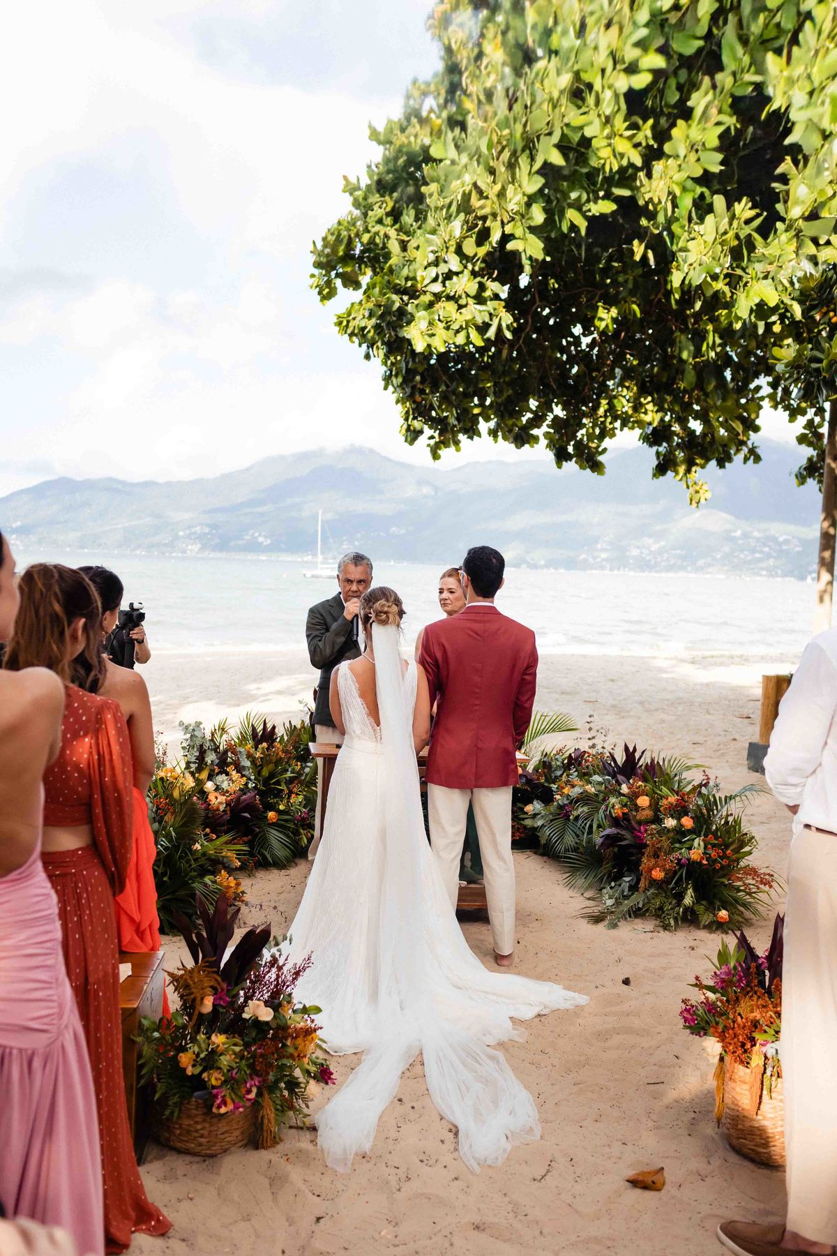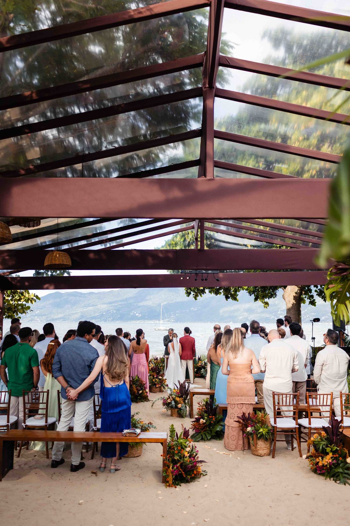 O dia foi presenteado com um pôr do sol dourado, daqueles que só o litoral norte de São Paulo sabe proporcionar. A cerimônia na Casa Arandella fluiu com uma energia vibrante, culminando em uma roda de samba contagiante que envolveu todos os convidados.