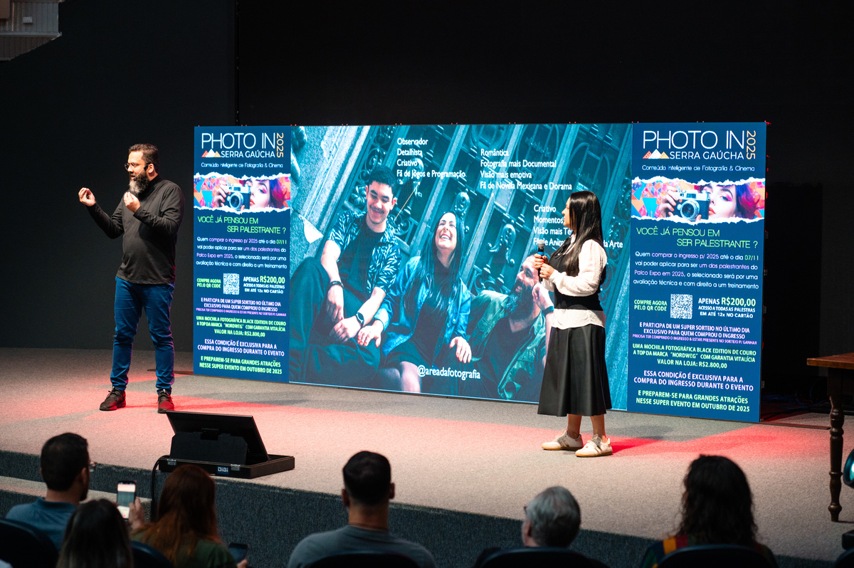 Subimos ao palco para falar sobre o que mais amamos: a arte de contar histórias reais através da fotografia. Acreditamos que a fotografia tem o poder de ir além da técnica, capturando a essência das pessoas e transmitindo emoções genuínas. E foi exatamente essa mensagem que levamos para o coração da Serra Gaúcha.