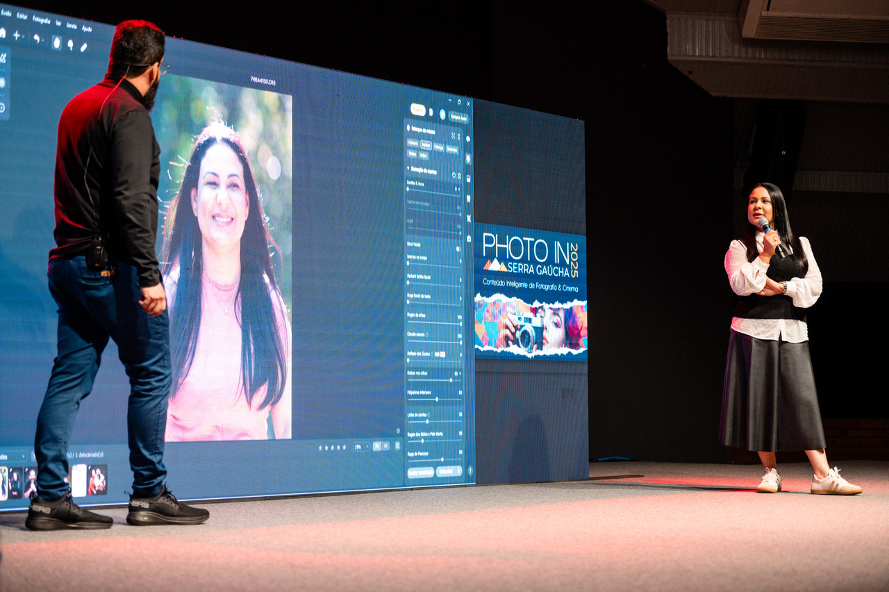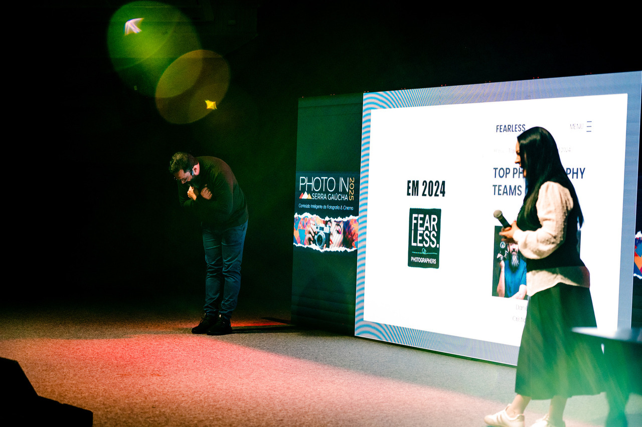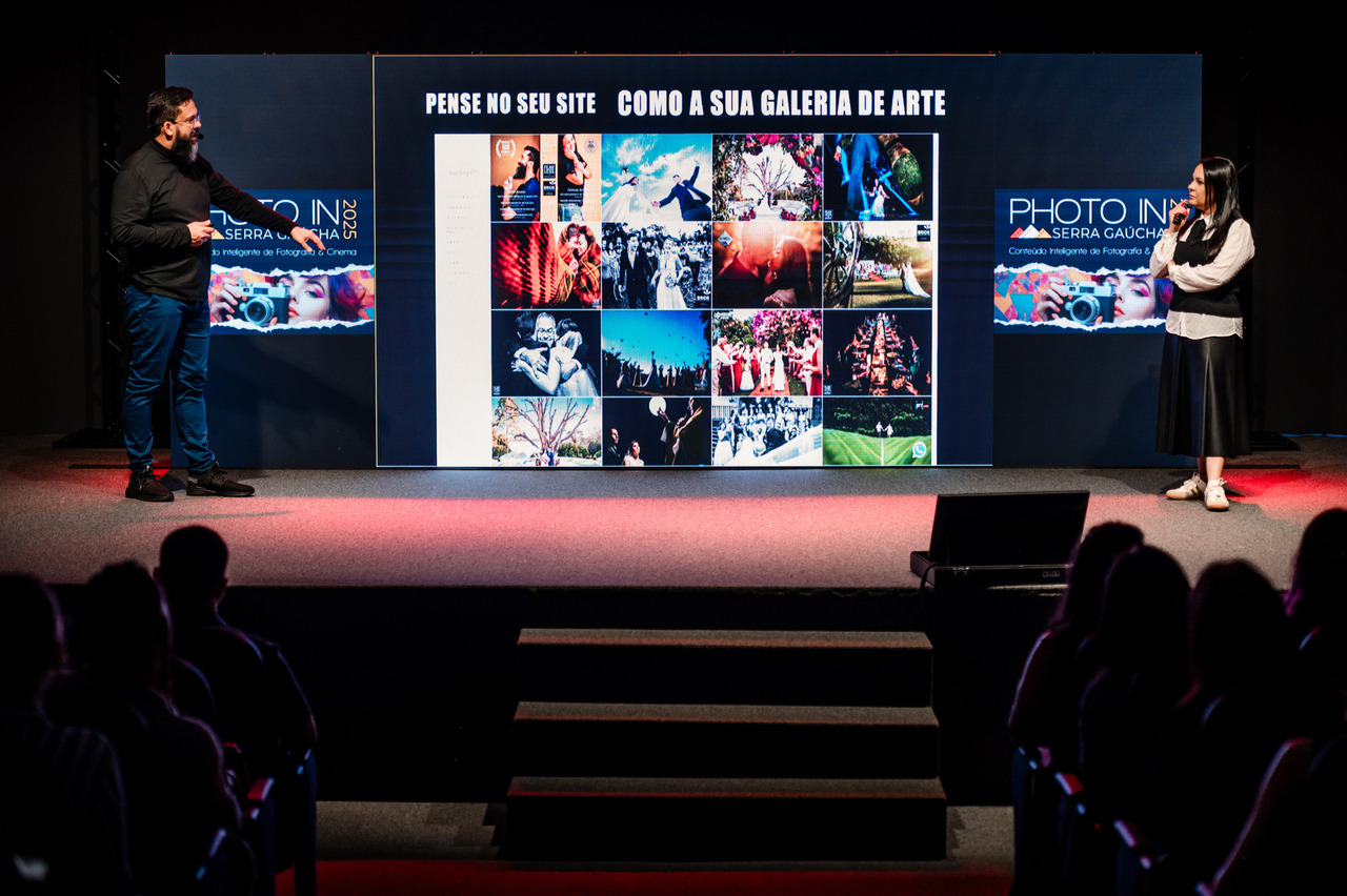 Subimos ao palco para falar sobre o que mais amamos: a arte de contar histórias reais através da fotografia. Acreditamos que a fotografia tem o poder de ir além da técnica, capturando a essência das pessoas e transmitindo emoções genuínas. E foi exatamente essa mensagem que levamos para o coração da Serra Gaúcha.